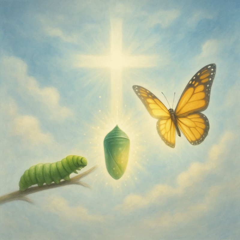 De rups lijkt niets meer op de vlinder. Maar toch: het is dezelfde. Dat is het mysterie. Zo zal ook ons lichaam worden veranderd – niet vernietigd, maar verheerlijkt.