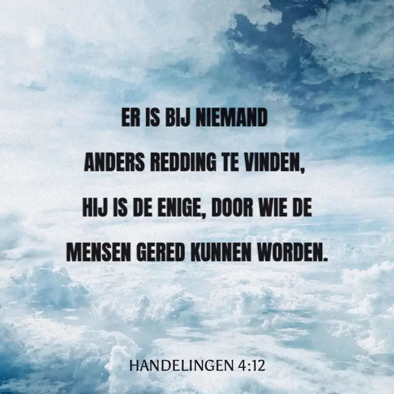 “Door niemand anders kunnen wij worden gered, want Zijn naam is de enige op aarde die de mens redding biedt.” Handelingen 4:12